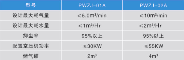 四、干霧抑塵系統(tǒng)主機(jī)型號(hào)參數(shù)
