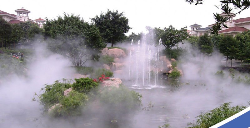 在很多現(xiàn)代化的花園式小區(qū)中,常常用FD防滴漏噴嘴、虹吸空氣霧化噴嘴制成一套人造霧系統(tǒng),在假山和花木中噴出細(xì)霧造出如癡如醉的夢幻景象。