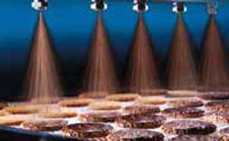 噴涂:使用噴霧控制噴涂雞蛋、奶油、油、巧克力、棉花糖、糖漿、調(diào)味料、色素、防腐劑、粘合劑