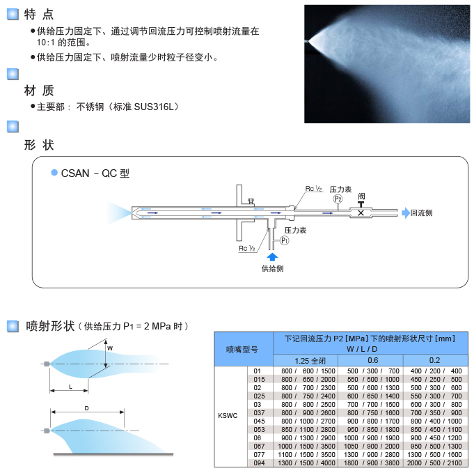 1、霧化均勻噴霧全區(qū)域的粒徑分布均勻,為液體的均勻蒸發(fā)和吸收反應提供了非常優(yōu)越的保證。平均顆粒直徑只有60μm。