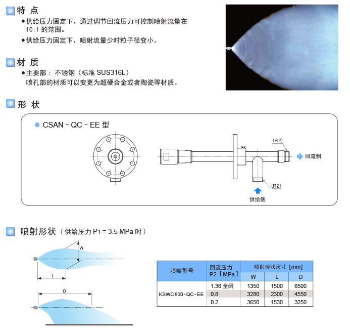 噴槍,其霧化角度從30-110度,流量從5L/h到780L/h,可滿足各工況環(huán)境的需要。