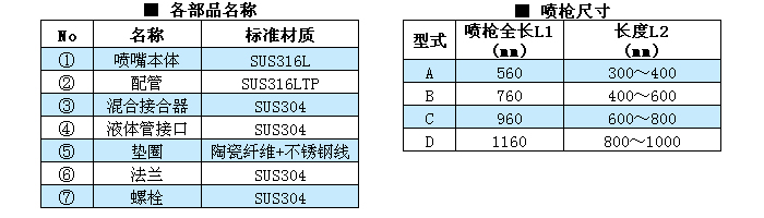 噴槍構(gòu)造及尺寸、材質(zhì)
