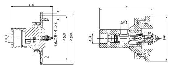 1、法蘭安裝式 萬(wàn)向球安裝底座通過(guò)法蘭安裝在應(yīng)用場(chǎng)合,噴嘴通過(guò)萬(wàn)向球可以在一定范圍內(nèi)(50°)調(diào)節(jié)噴嘴方向。底座內(nèi)可以安裝加熱棒,防止寒冷環(huán)境下水源結(jié)冰。